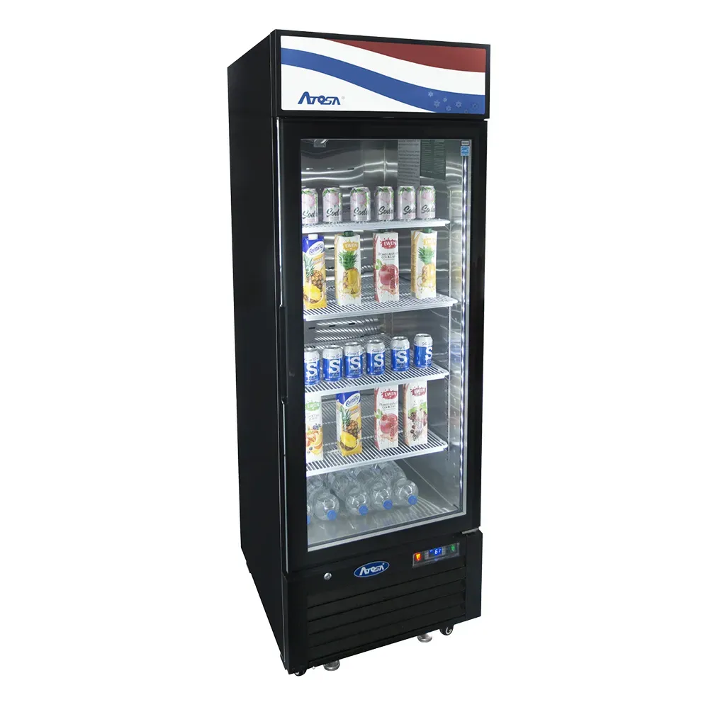 Master the art of cooking with the Atosa USA MCF8725GR Refrigerator Merchandiser. This one-section refrigerator is designed to meet the needs of commercial restaurants, offering a spacious 11.1 cu. ft. capacity to store and display your culinary creations. The self-closing hinged glass door with a lock ensures the safety and freshness of your ingredients, while the Dixell electronic controller allows you to easily adjust the temperature between 33° to 38°F. With four shelves and LED interior lighting, you can showcase your products in an attractive and well-lit manner. The stainless steel interior and black steel exterior not only provide durability but also add a sleek and professional look to your establishment. Equipped with 2" casters, this refrigerator merchandiser is easy to move and clean. Powered by a 1/7 HP compressor and using R290 Hydrocarbon refrigerant, this unit is energy-efficient and environmentally friendly. Upgrade your restaurant's refrigeration capabilities with the Atosa USA MCF8725GR Refrigerator Merchandiser.