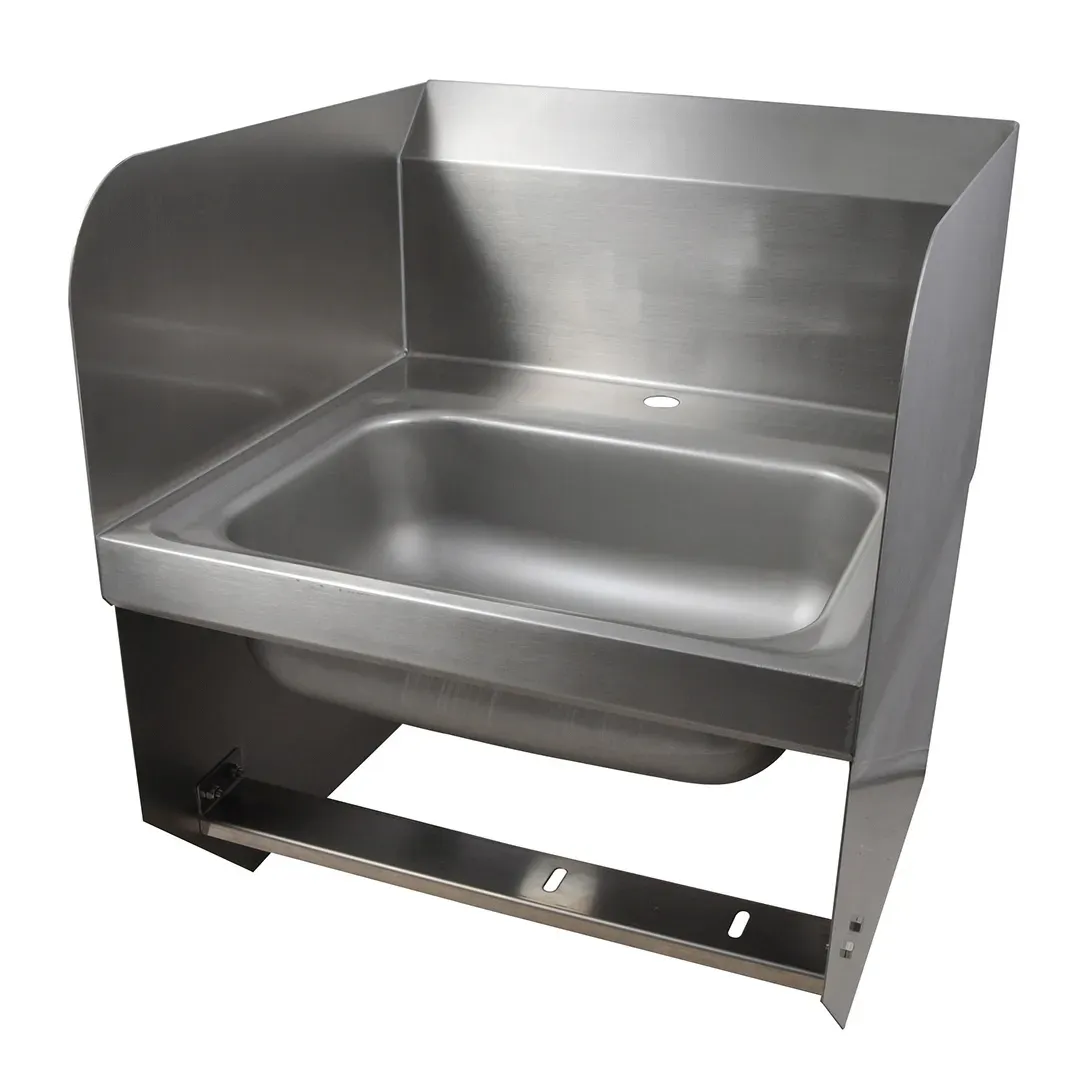 Serve with pride with the BK Resources, BKHS-D-1410-1-SS-BKK Hand Sink. This wall-mounted hand sink is designed specifically for commercial restaurant use, ensuring the highest standards of cleanliness and hygiene. The sink features a 14" wide x 10" front-to-back x 5" deep bowl, providing ample space for handwashing. The single deck mount faucet hole allows for easy installation of a faucet, while the side splashes on the left and right prevent water from splashing onto surrounding surfaces. The 7-3/8"H backsplash adds an extra layer of protection against water damage. Made from durable 304 stainless steel, this hand sink is built to withstand the demands of a busy restaurant environment. It includes a basket drain, knee and wall brackets for easy installation. NSF certified, this hand sink meets the highest standards of sanitation. Upgrade your restaurant's handwashing station with the BK Resources Hand Sink.