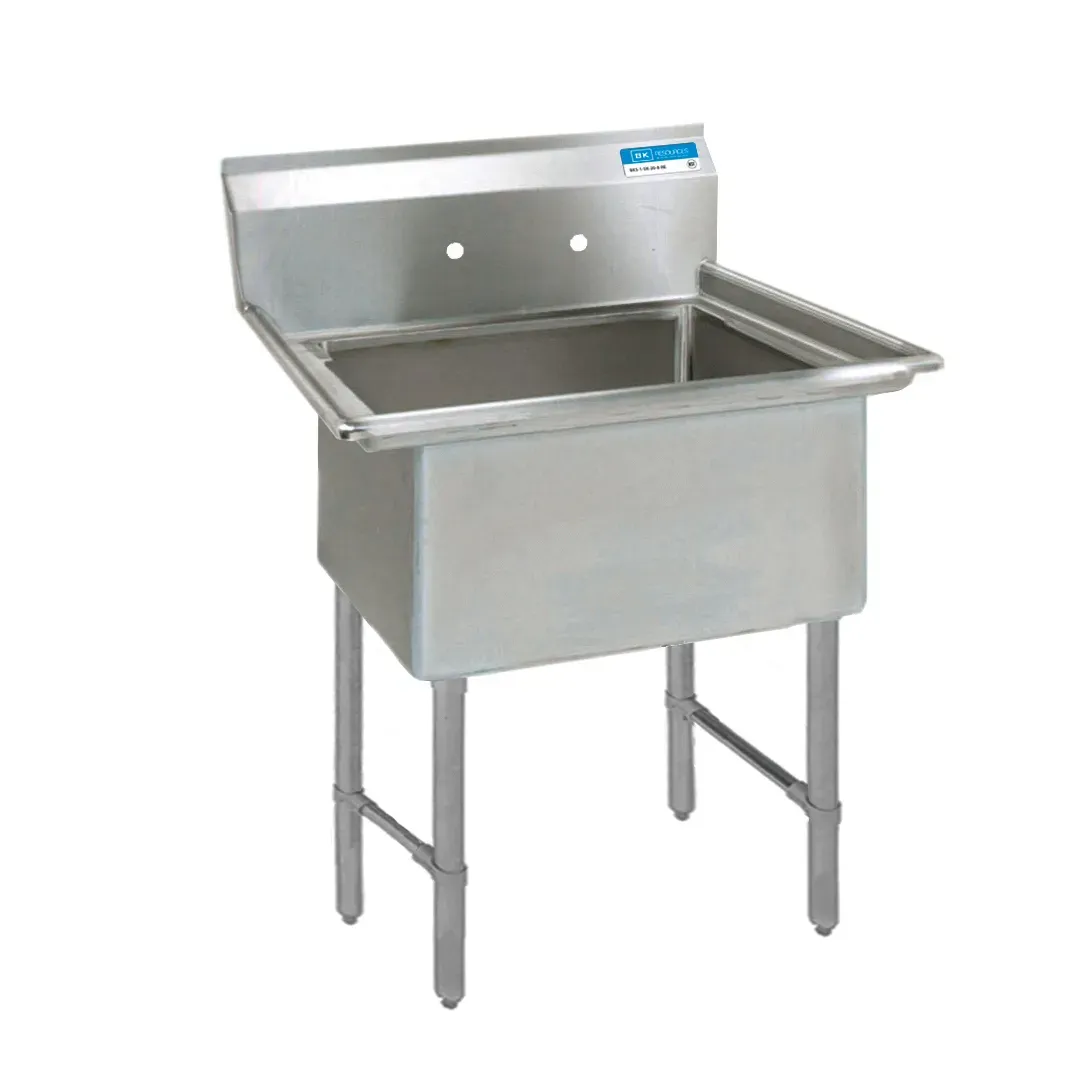 Cooking at its finest begins with the BK Resources BKS-1-1824-14S Sink, (1) One Compartment. This high-quality sink is designed to meet the demands of a busy commercial restaurant kitchen. With its 18/304 stainless steel deck and bowl, it offers durability and resistance to corrosion, ensuring long-lasting performance. The sink features a spacious 18" wide x 24" front-to-back x 14" deep compartment, providing ample space for washing and rinsing dishes, utensils, and ingredients. The 9" backsplash helps to keep the surrounding area clean and protected. The 8" OC splash mount faucet holes allow for easy installation of a faucet, enhancing the sink's functionality. The stainless steel legs and side crossbracing provide stability and support, while the stainless steel over plastic adjustable bullet feet ensure easy leveling on any surface. NSF certified, this sink meets the highest standards of cleanliness and sanitation. Upgrade your restaurant kitchen with the BK Resources BKS-1-1824-14S Sink, (1) One Compartment, and experience the convenience and efficiency it brings to your daily operations.