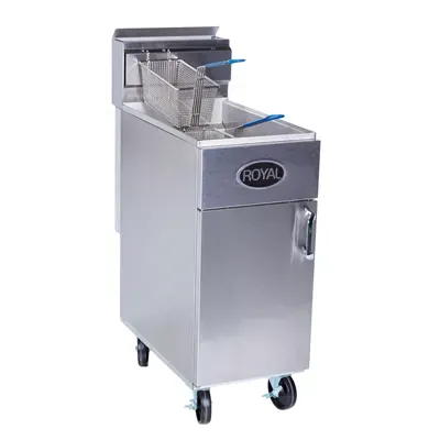 Streamline meal preparation with the Royal Range of California, RFT-50 Fryer. This gas-powered, floor model fryer is designed for commercial restaurant use, offering a generous 50 lb. oil capacity full tank. With three 38000 BTU burners and thermostatic control, you can easily achieve the perfect cooking temperature for your dishes. The millivolt temperature control allows for a range of 200 - 400F, ensuring precise and consistent results every time. The stainless steel front and sides not only provide durability but also add a sleek and professional look to your kitchen. The adjustable 6" legs allow for easy customization to fit your workspace. With a powerful 114000 BTU output, this fryer delivers exceptional performance and efficiency. CSA Star, CSA Flame, and NSF certifications guarantee its safety and quality. Made in the USA, the Royal Range of California RFT-50 Fryer is a reliable and essential addition to any commercial kitchen.