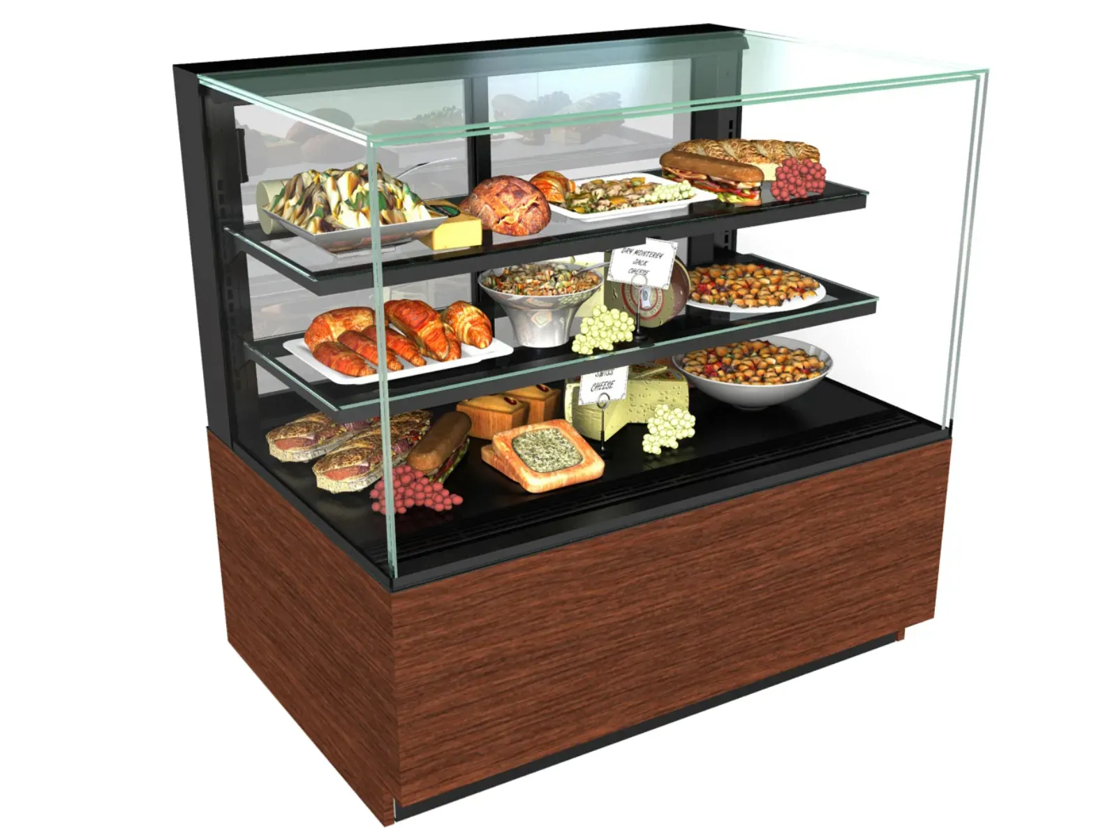 Maximize efficiency with the Structural Concepts NR6047RSV Display Case. This freestanding refrigerated case is designed to meet the needs of commercial restaurants, offering a spacious 59-3/4"W and 47-1/8"H interior. The Breeze-E (Type II) self-contained refrigeration system ensures optimal cooling performance, while the EnergyWise technology helps reduce energy consumption. The case features two removable and adjustable clear glass shelves, allowing for flexible display options. LED top and shelf lights illuminate your products, enhancing their visibility and appeal. The vertical design, fixed front and side UV frameless glass, and clear glass rear sliding doors create an attractive showcase for your merchandise. With a black exterior and interior, this display case exudes a sleek and professional look. The blue fin coated coil and condensate pan ensure reliable operation, while the cETLus and ETL-Sanitation certifications guarantee its quality and safety. Elevate your restaurant's display with the Structural Concepts NR6047RSV Display Case.